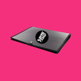 This City of Stars black folder includes inserts and our big sticker on the front. It also has a hand strap on the spine so you can hold this with one hand, leaving the other free for a boogie!
